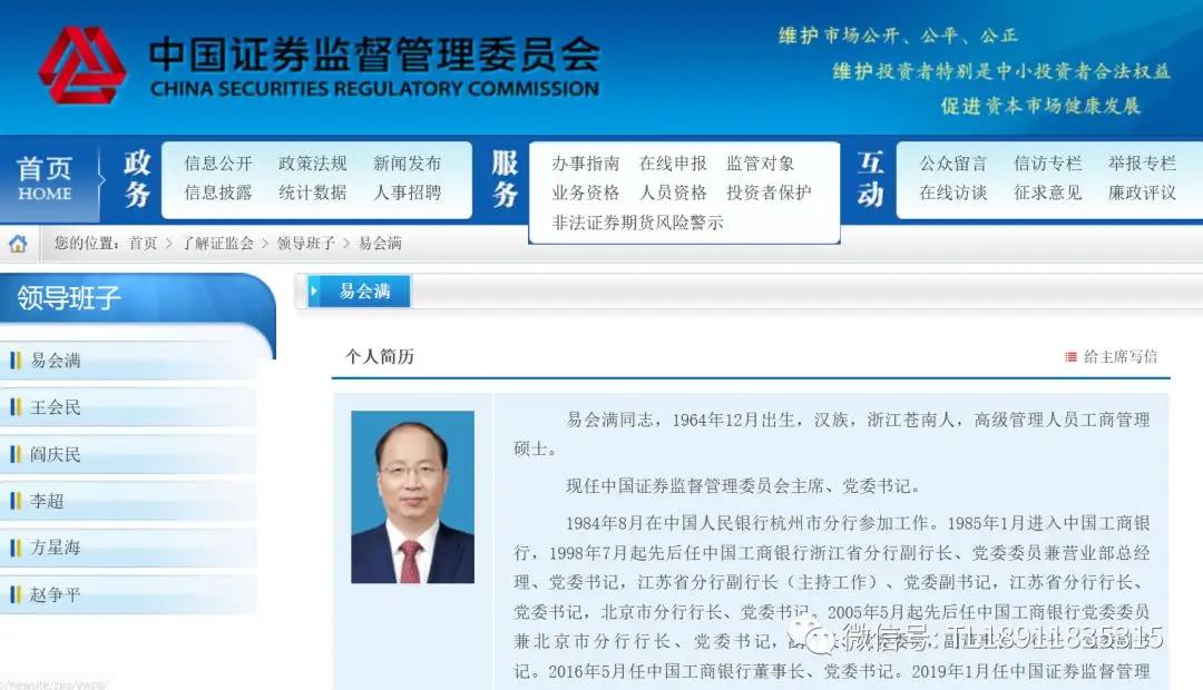 易会满辞任工商银行董事长,正式上任中国证监会主席