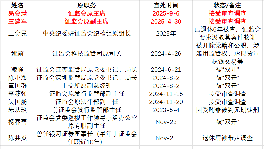 根据中央纪委国家监委的通报,仅2025年上半年,就有包括易会满、王建军等多名证监会系统的高级官员被查。这表明金融反腐正在持续深化,并向纵深发展。